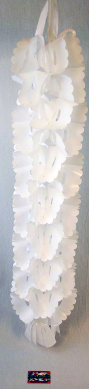 Plastic accordion hanging vertical decorations. Opens like an accordion up to 3ft tall. You can hang them on trees and are weather durable. Seasonal colors available.